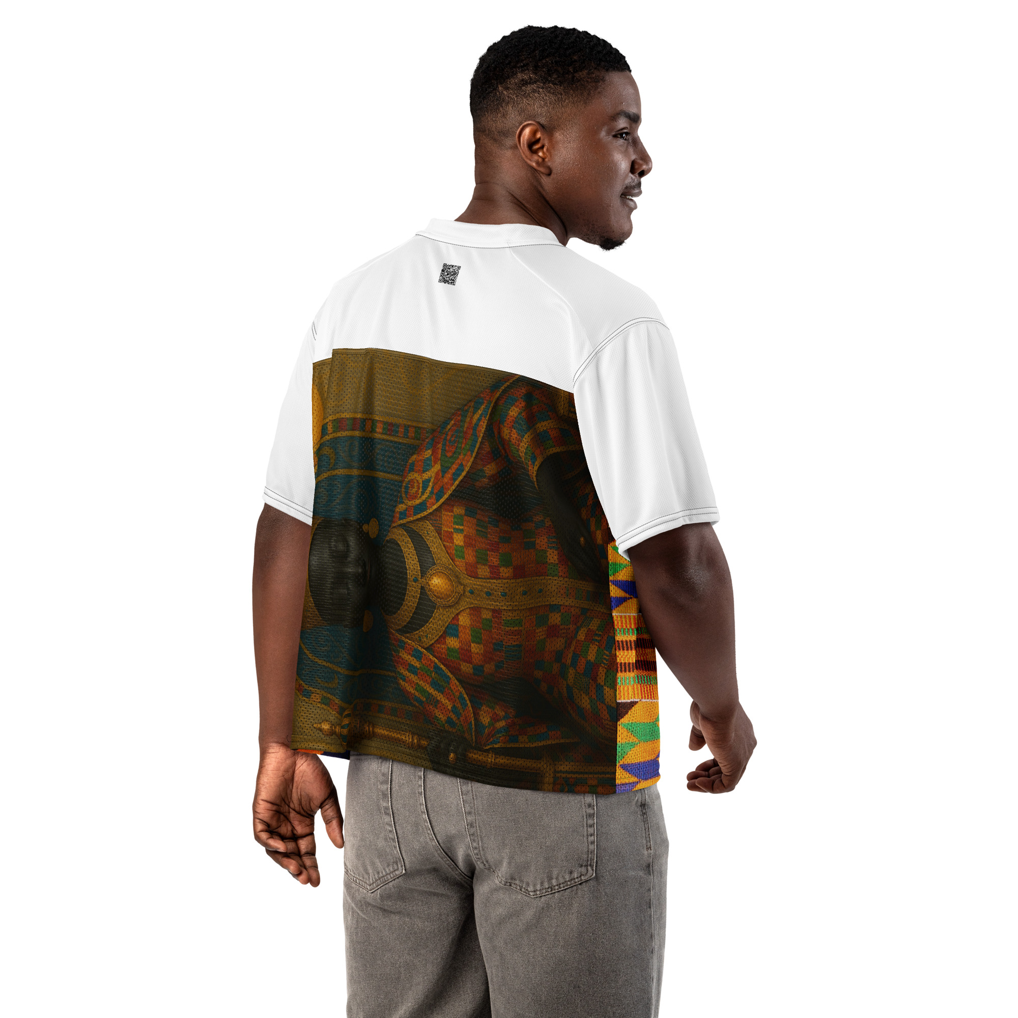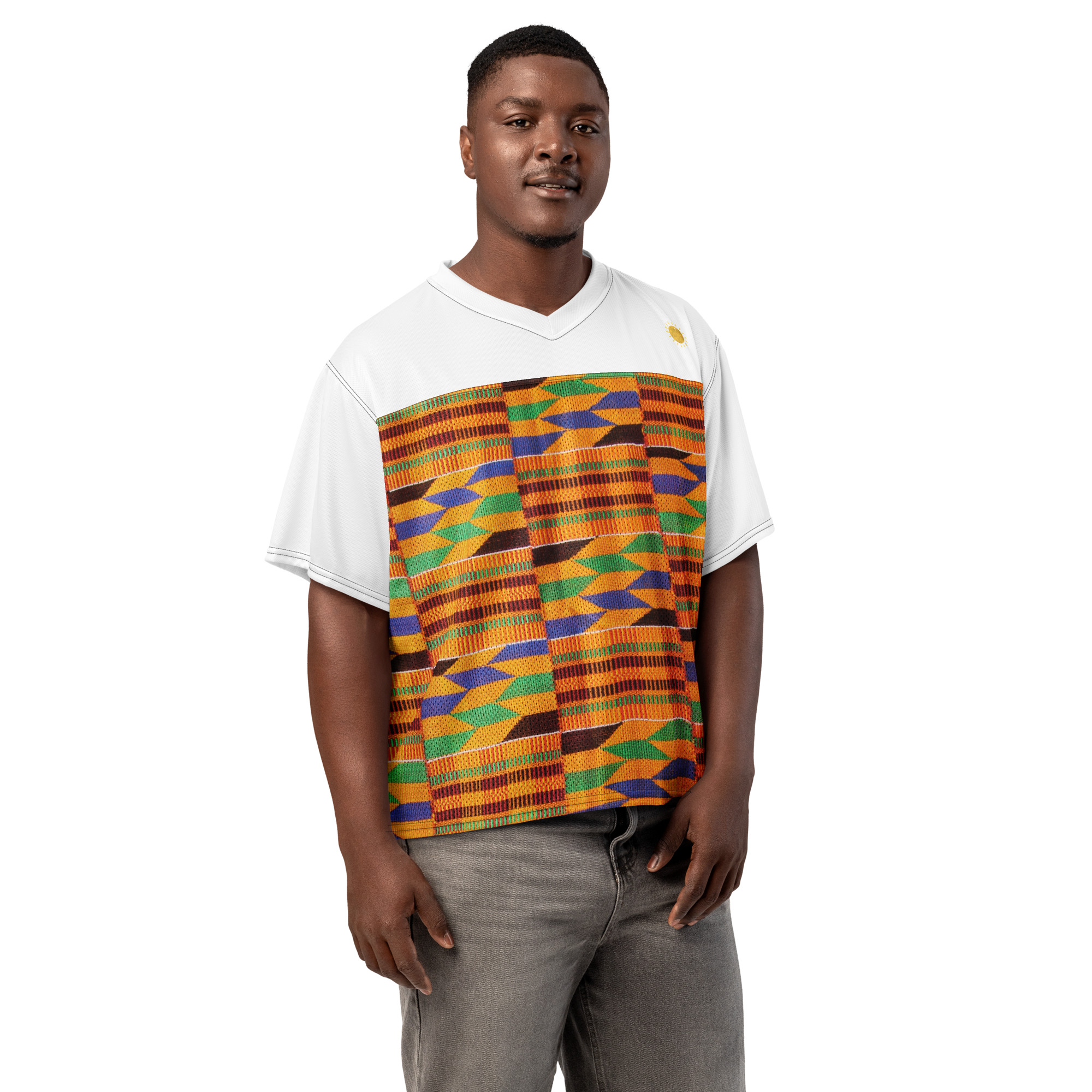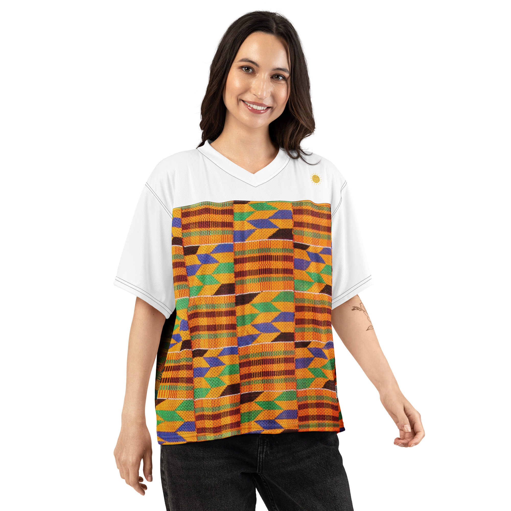 A breathable football jersey with silky top fabric and heavy mesh bottom. Moisture-wicking, 2-way stretch, and relaxed fit.
